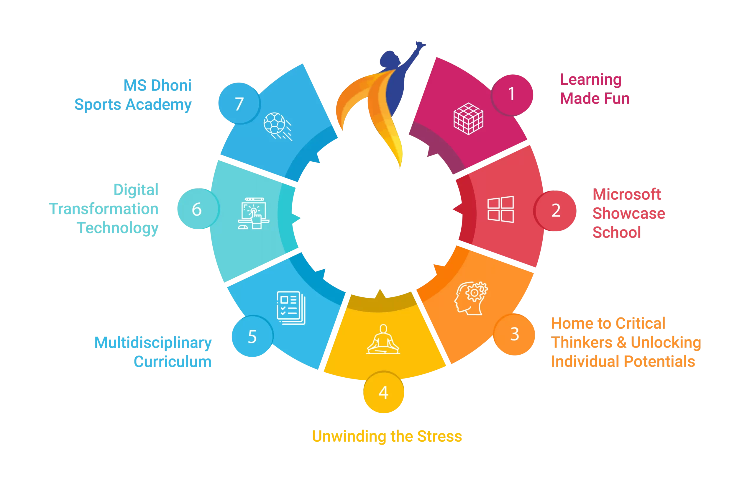 At M S Dhoni Global School, students are going to be the pioneers of 21st-century education. Creating a 360-degree child development environment, the school includes an innovative curriculum and modern facilities that make it one-of-a-kind in India.